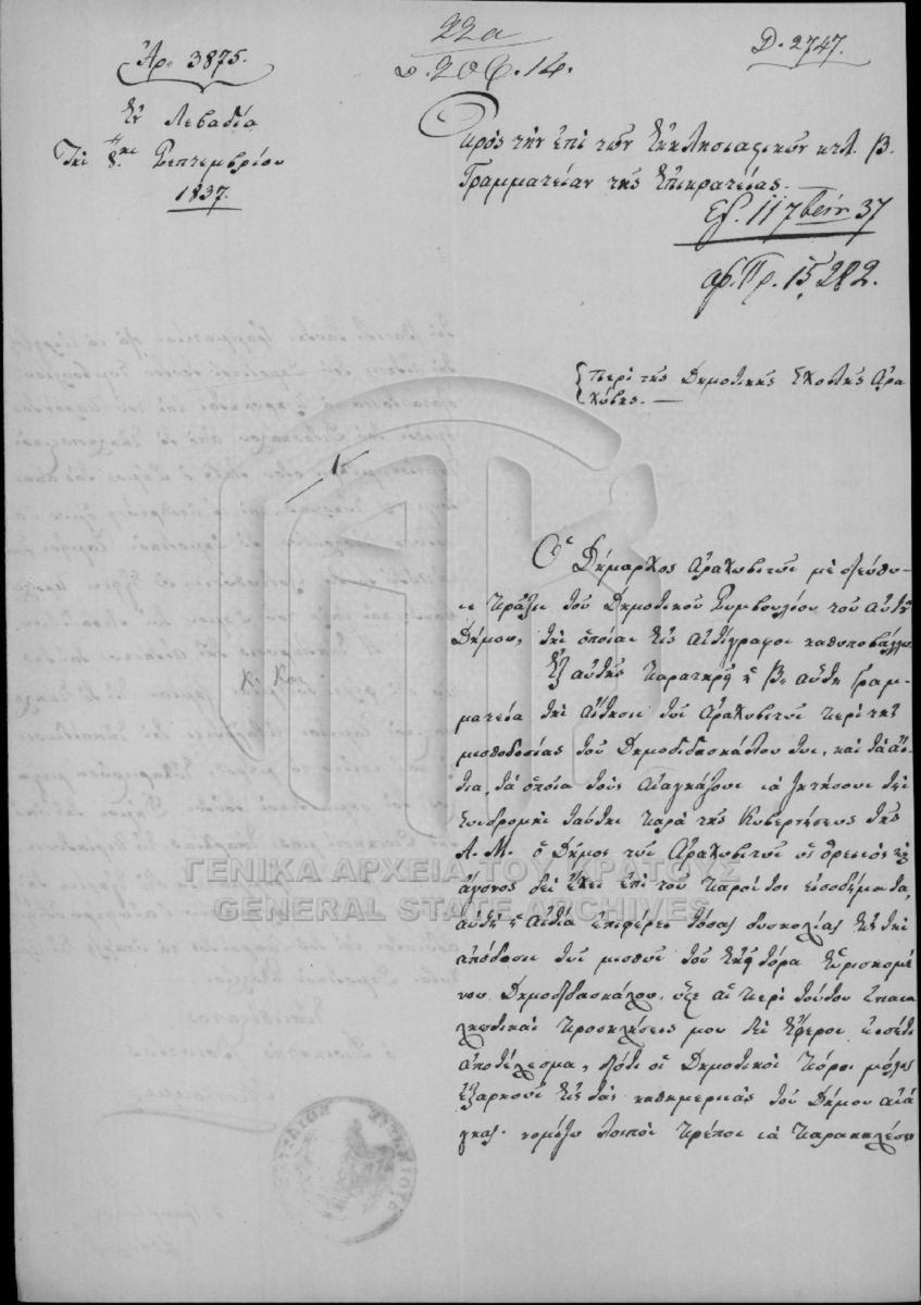 [Fonds] GRGSA-CSA_PAO013 SECRETARIAT/MINISTRY OF ECCLESIASTICAL ISSUES AND STATE EDUCATION ARCHIVE (1833-1848) - SECRETARIAT/MINISTRY OF ECCLESIASTICAL ISSUES AND STATE EDUCATION ARCHIVE (1833-1848) [1833 - 1848] Το αρχείο της Γραμματείας επί των Εκκλησιαστικών και της Δημοσίου Εκπαιδεύσεως διαρθρώνεται σε τρεις σειρές ως εξής: Ι. Σειρά των Εκκλη... |