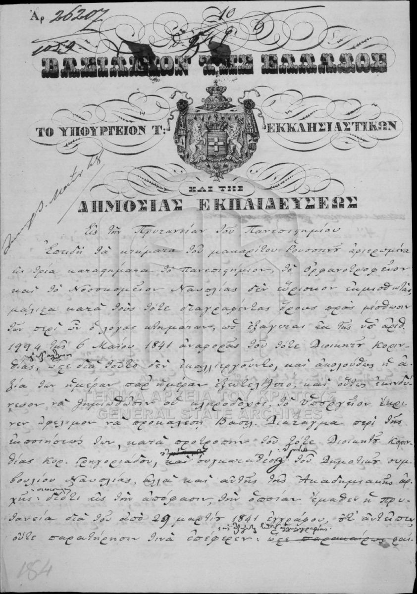 SECRETARIAT/MINISTRY OF ECCLESIASTICAL ISSUES AND STATE EDUCATION ARCHIVE (1833-1848) - SECRETARIAT/MINISTRY OF ECCLESIASTICAL ISSUES AND STATE EDUCATION ARCHIVE (1833-1848)  [1833 - 1848]