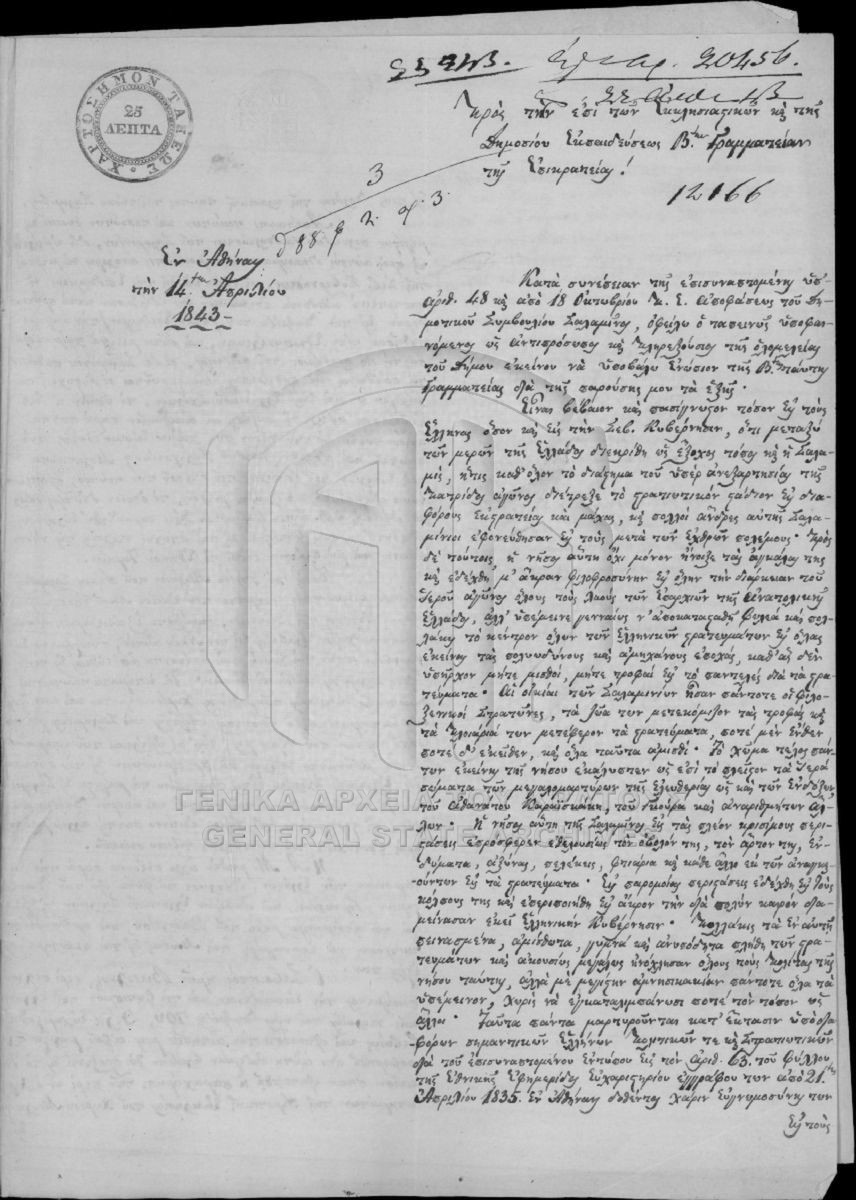 [Fonds] GRGSA-CSA_PAO013 SECRETARIAT/MINISTRY OF ECCLESIASTICAL ISSUES AND STATE EDUCATION ARCHIVE (1833-1848) - SECRETARIAT/MINISTRY OF ECCLESIASTICAL ISSUES AND STATE EDUCATION ARCHIVE (1833-1848) [1833 - 1848] Το αρχείο της Γραμματείας επί των Εκκλησιαστικών και της Δημοσίου Εκπαιδεύσεως διαρθρώνεται σε τρεις σειρές ως εξής: Ι. Σειρά των Εκκλη... |