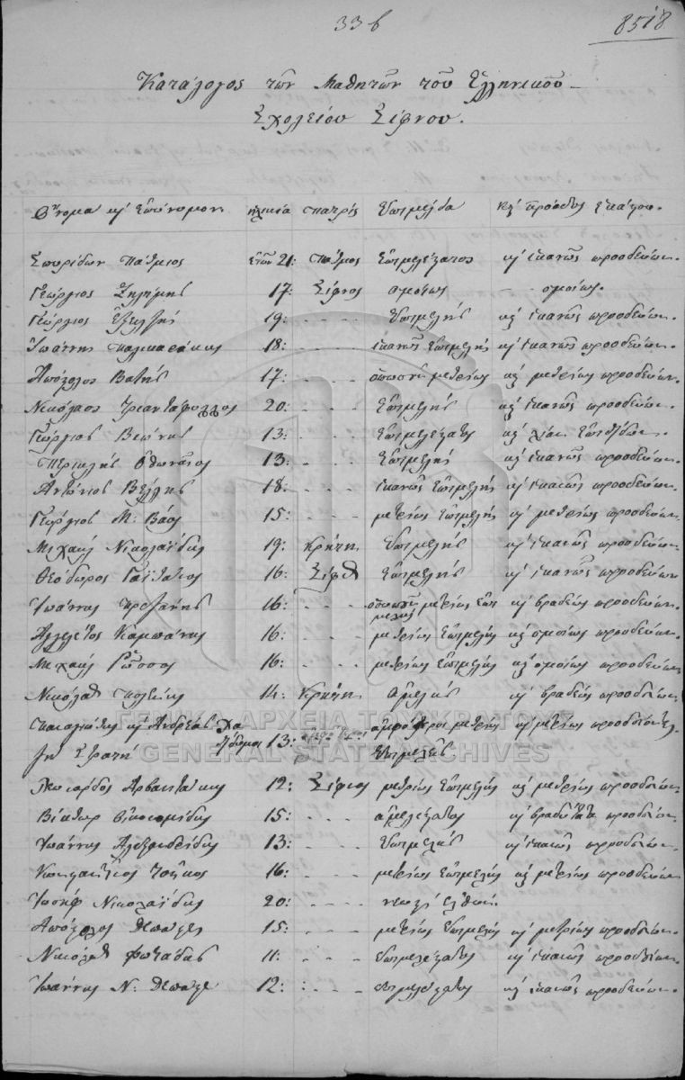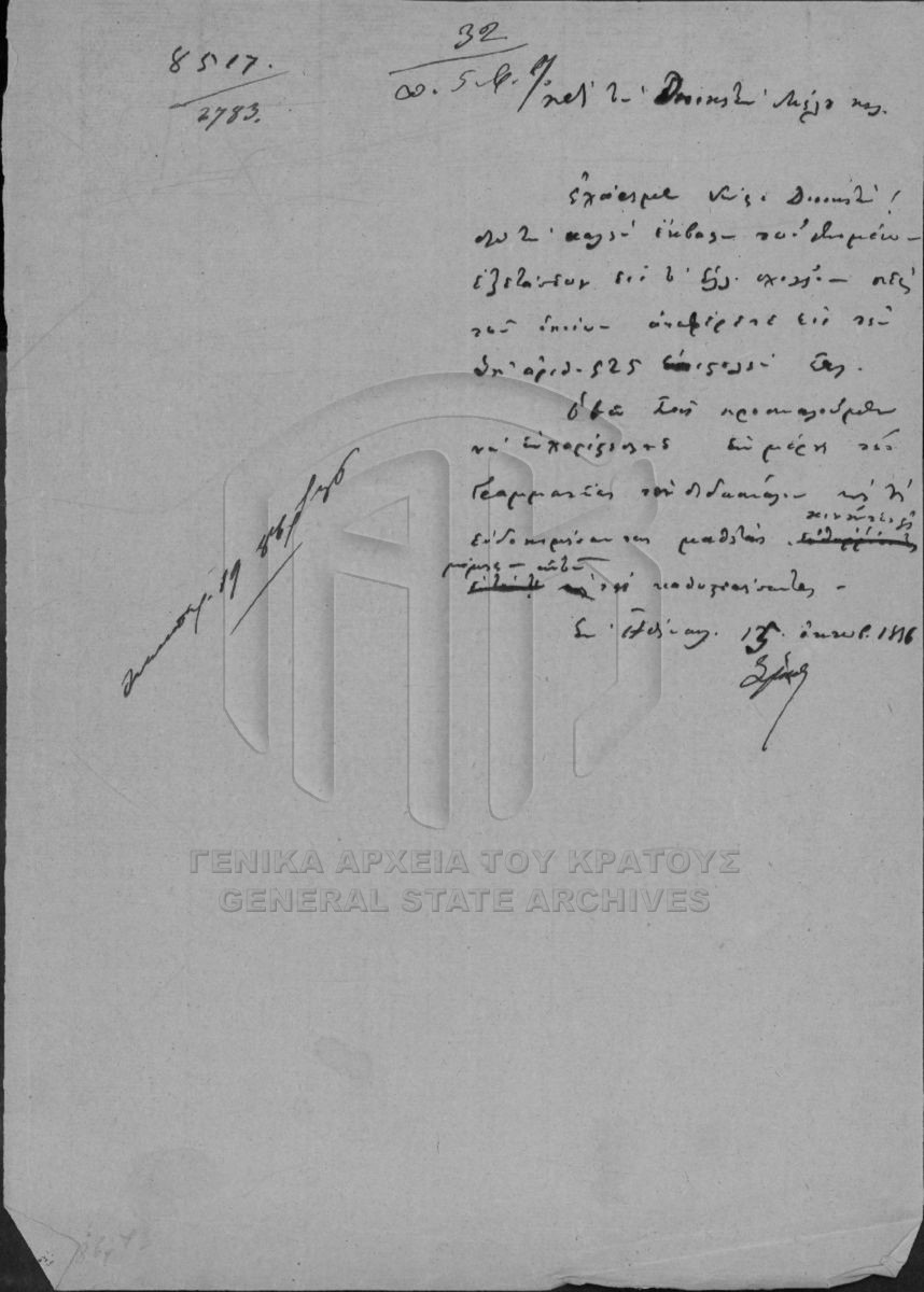[Fonds] GRGSA-CSA_PAO013 SECRETARIAT/MINISTRY OF ECCLESIASTICAL ISSUES AND STATE EDUCATION ARCHIVE (1833-1848) - SECRETARIAT/MINISTRY OF ECCLESIASTICAL ISSUES AND STATE EDUCATION ARCHIVE (1833-1848) [1833 - 1848] Το αρχείο της Γραμματείας επί των Εκκλησιαστικών και της Δημοσίου Εκπαιδεύσεως διαρθρώνεται σε τρεις σειρές ως εξής: Ι. Σειρά των Εκκλη...  |