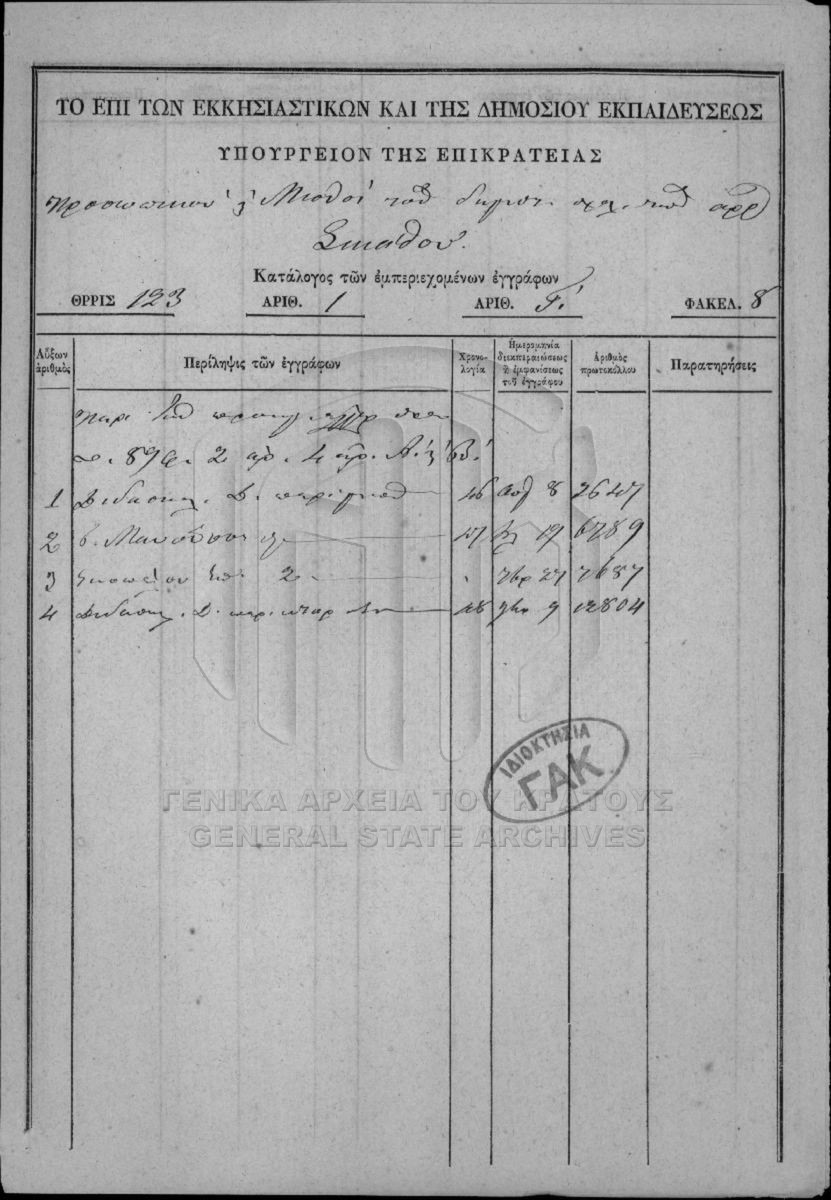 Αρχείο Γραμματείας / Υπουργείου Εκκλησιαστικών και Δημοσίου Εκπαιδεύσεως  [1833 - 1848]