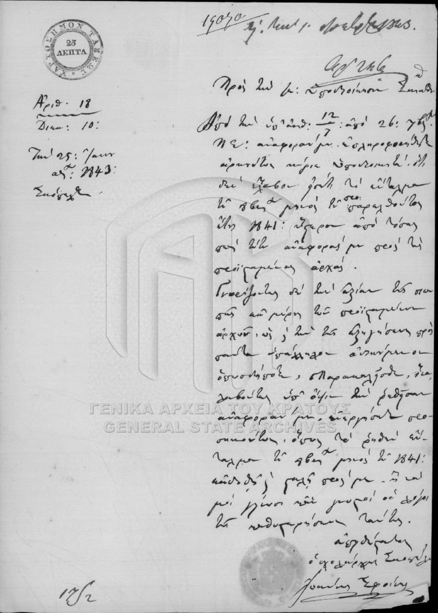 [Fonds] GRGSA-CSA_PAO013 SECRETARIAT/MINISTRY OF ECCLESIASTICAL ISSUES AND STATE EDUCATION ARCHIVE (1833-1848) - SECRETARIAT/MINISTRY OF ECCLESIASTICAL ISSUES AND STATE EDUCATION ARCHIVE (1833-1848) [1833 - 1848] Το αρχείο της Γραμματείας επί των Εκκλησιαστικών και της Δημοσίου Εκπαιδεύσεως διαρθρώνεται σε τρεις σειρές ως εξής: Ι. Σειρά των Εκκλη... |