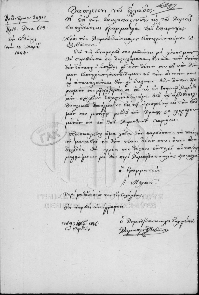 Φάκελος #2716 - Σοφικού Δήμου Σολυγείας Δημοτικόν Σχολείον των αρρένων  [1846 - 1848]