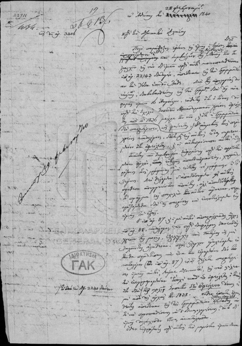 Φάκελος #2718 - Σωποτού Ελληνικόν Σχολείον  [1837 - 1840]