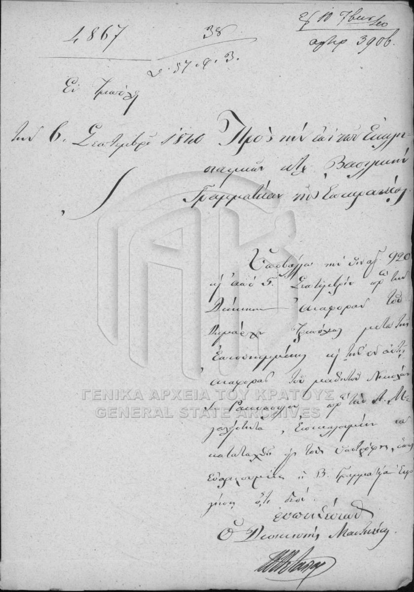 [Fonds] GRGSA-CSA_PAO013 SECRETARIAT/MINISTRY OF ECCLESIASTICAL ISSUES AND STATE EDUCATION ARCHIVE (1833-1848) - SECRETARIAT/MINISTRY OF ECCLESIASTICAL ISSUES AND STATE EDUCATION ARCHIVE (1833-1848) [1833 - 1848] Το αρχείο της Γραμματείας επί των Εκκλησιαστικών και της Δημοσίου Εκπαιδεύσεως διαρθρώνεται σε τρεις σειρές ως εξής: Ι. Σειρά των Εκκλη... |