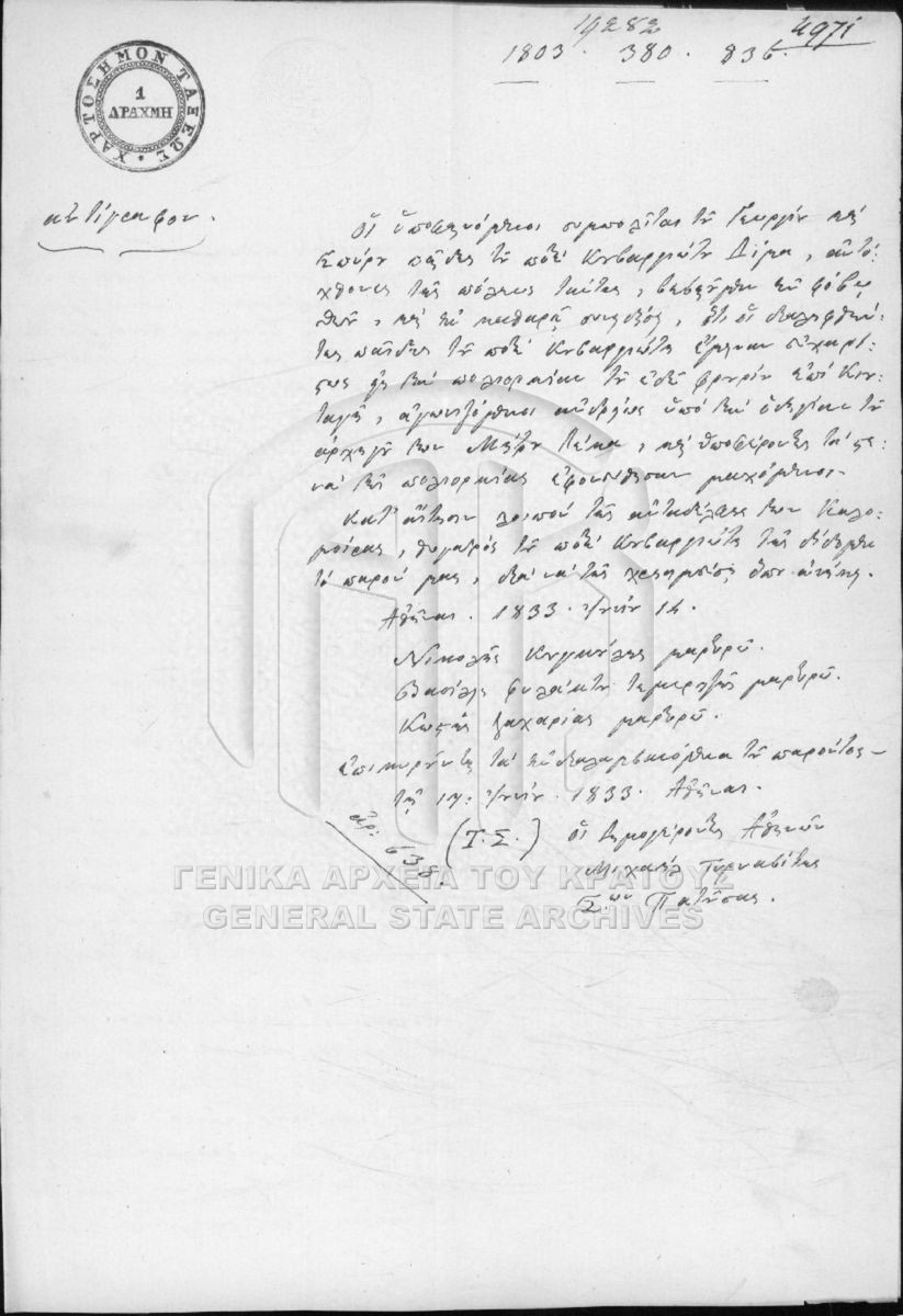 Αρχείο Γραμματείας / Υπουργείου Εκκλησιαστικών και Δημοσίου Εκπαιδεύσεως  [1833 - 1848]