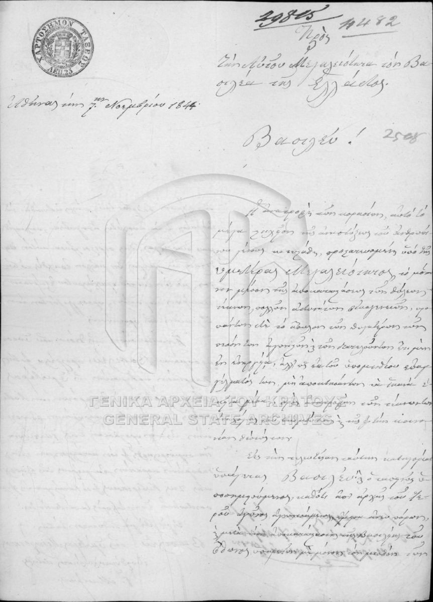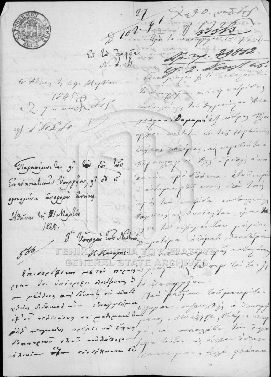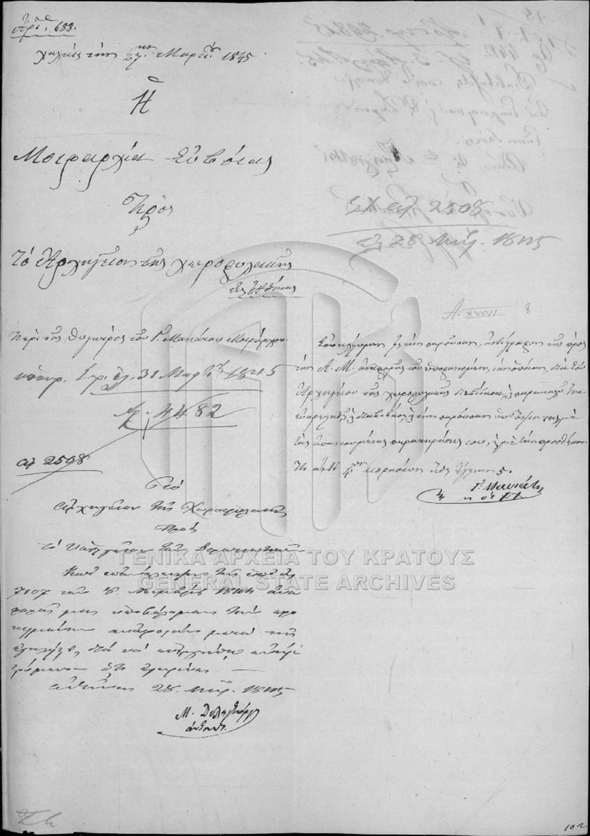[Fonds] GRGSA-CSA_PAO013 SECRETARIAT/MINISTRY OF ECCLESIASTICAL ISSUES AND STATE EDUCATION ARCHIVE (1833-1848) - SECRETARIAT/MINISTRY OF ECCLESIASTICAL ISSUES AND STATE EDUCATION ARCHIVE (1833-1848) [1833 - 1848] Το αρχείο της Γραμματείας επί των Εκκλησιαστικών και της Δημοσίου Εκπαιδεύσεως διαρθρώνεται σε τρεις σειρές ως εξής: Ι. Σειρά των Εκκλη... |