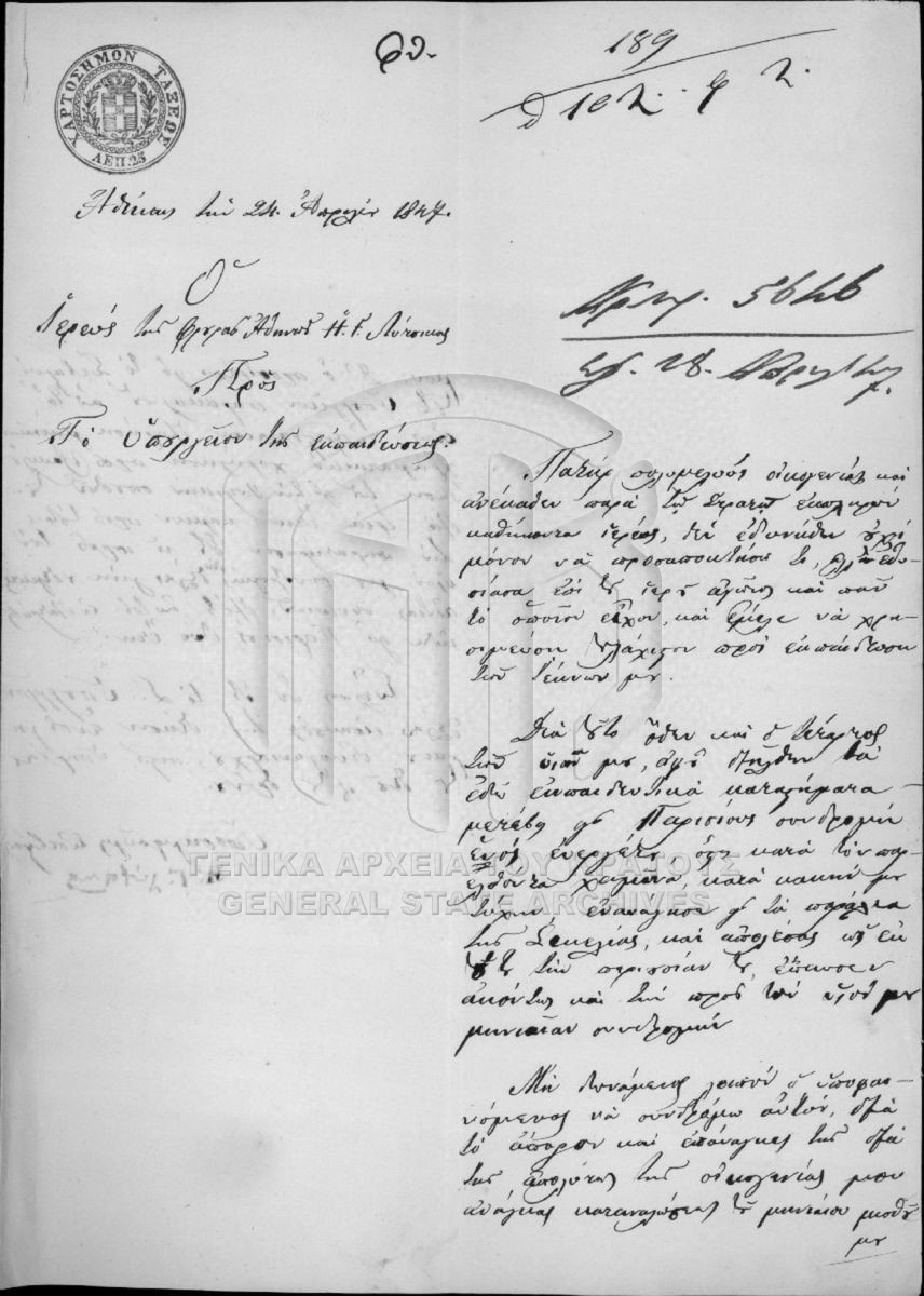 [Fonds] GRGSA-CSA_PAO013 ARCHIVES DE LA CHANCELLERIE/DU MINISTERE DES CULTES ET DE L'EDUCATION PUBLIQUE (1833-1848) - ARCHIVES DE LA CHANCELLERIE/DU MINISTERE DES CULTES ET DE L'EDUCATION PUBLIQUE (1833-1848) [1833 - 1848] Το αρχείο της Γραμματείας επί των Εκκλησιαστικών και της Δημοσίου Εκπαιδεύσεως διαρθρώνεται σε τρεις σειρές ως εξής: Ι. Σειρά των Εκκλη... |
