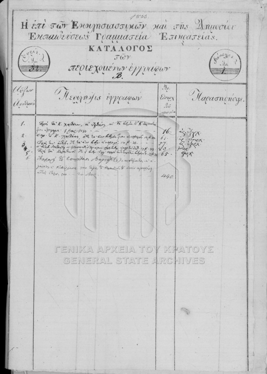 [File] GRGSA-CSA_PAO013.S02.01.F002805 File #2805 - SECRETARIAT/MINISTRY OF ECCLESIASTICAL ISSUES AND STATE EDUCATION ARCHIVE (1833-1848) [1833] Personal. Karantinos. |