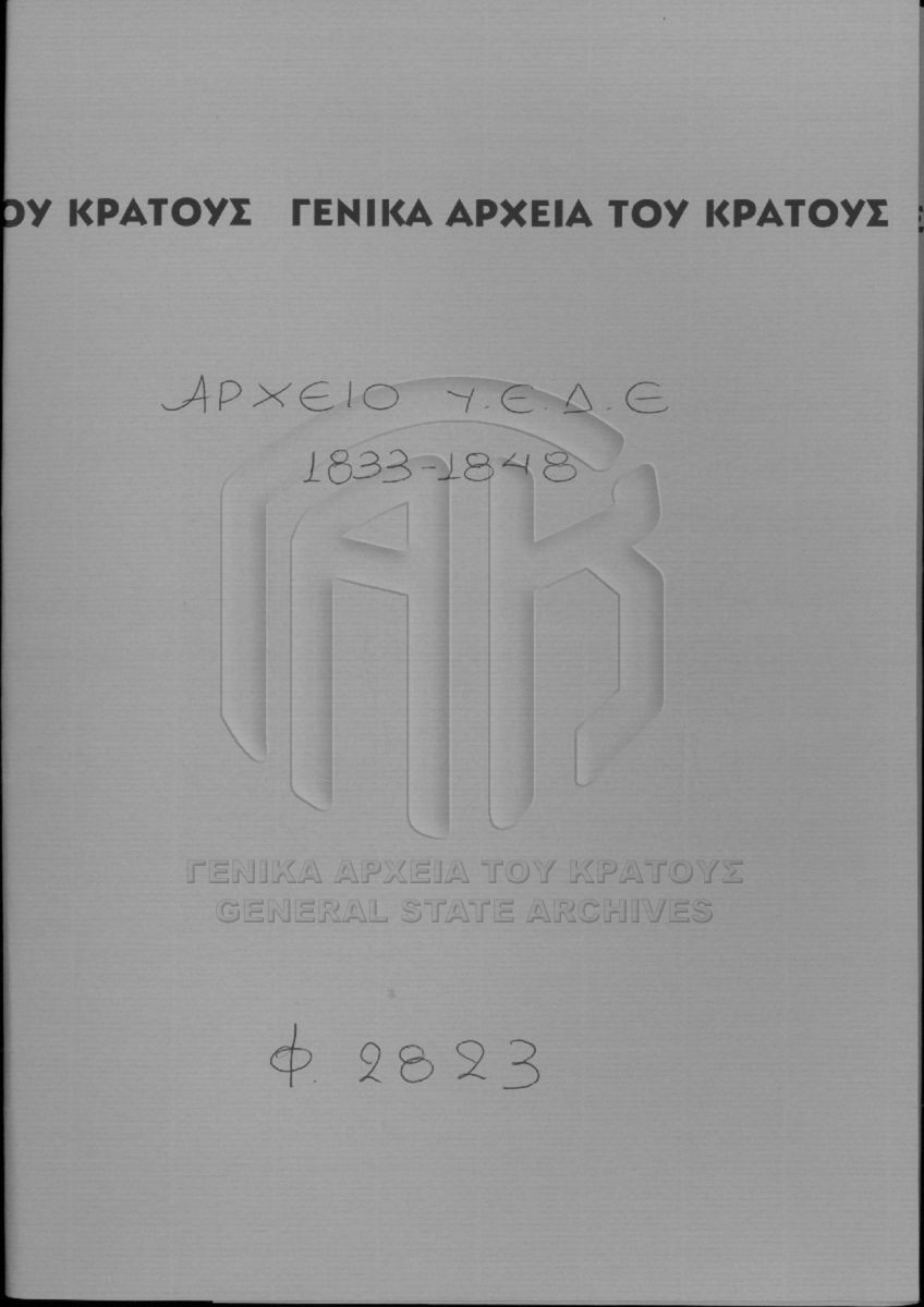 [Fonds] GRGSA-CSA_PAO013 ARCHIVES DE LA CHANCELLERIE/DU MINISTERE DES CULTES ET DE L'EDUCATION PUBLIQUE (1833-1848) - ARCHIVES DE LA CHANCELLERIE/DU MINISTERE DES CULTES ET DE L'EDUCATION PUBLIQUE (1833-1848) [1833 - 1848] Το αρχείο της Γραμματείας επί των Εκκλησιαστικών και της Δημοσίου Εκπαιδεύσεως διαρθρώνεται σε τρεις σειρές ως εξής: Ι. Σειρά των Εκκλη... |