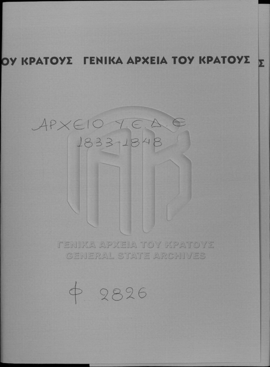 [Fonds] GRGSA-CSA_PAO013 ARCHIVES DE LA CHANCELLERIE/DU MINISTERE DES CULTES ET DE L'EDUCATION PUBLIQUE (1833-1848) - ARCHIVES DE LA CHANCELLERIE/DU MINISTERE DES CULTES ET DE L'EDUCATION PUBLIQUE (1833-1848) [1833 - 1848] Το αρχείο της Γραμματείας επί των Εκκλησιαστικών και της Δημοσίου Εκπαιδεύσεως διαρθρώνεται σε τρεις σειρές ως εξής: Ι. Σειρά των Εκκλη... |