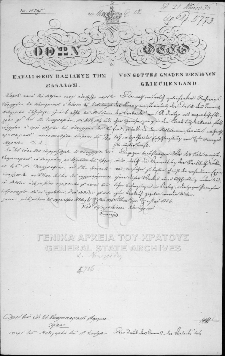 [File] GRGSA-CSA_PAO013.S02.01.F002831 File #2831 - SECRETARIAT/MINISTRY OF ECCLESIASTICAL ISSUES AND STATE EDUCATION ARCHIVE (1833-1848) [1836] A. Soutzos. |