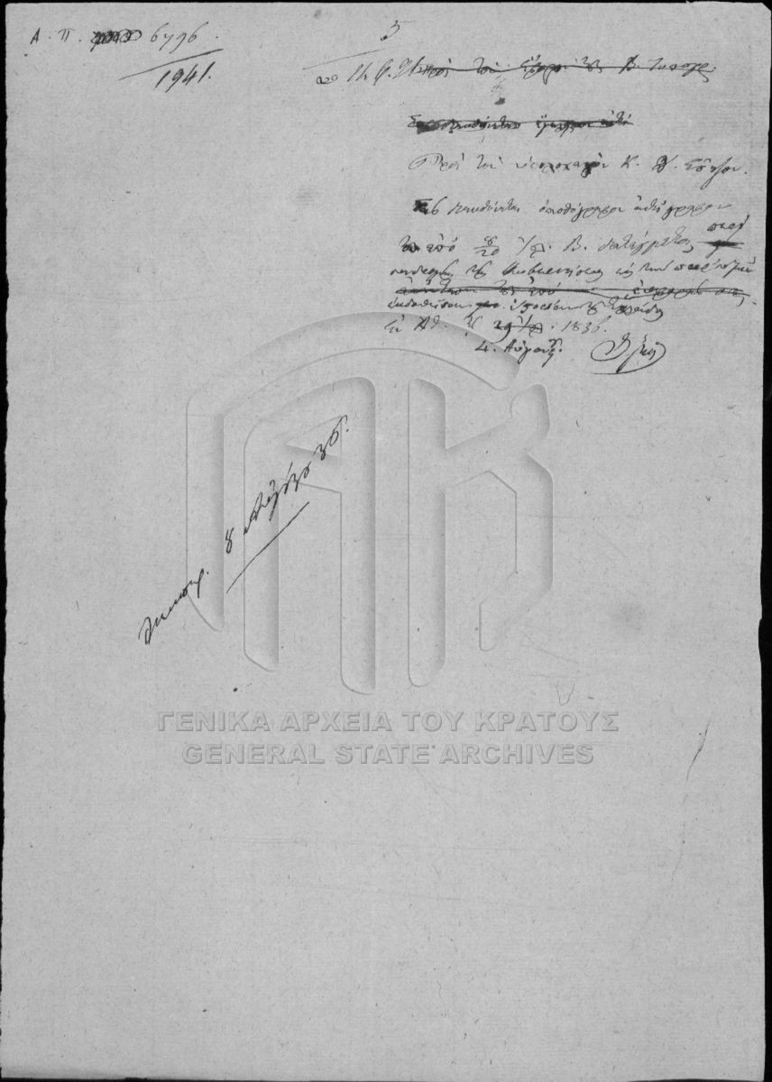 [File] GRGSA-CSA_PAO013.S02.01.F002840 File #2840 - SECRETARIAT/MINISTRY OF ECCLESIASTICAL ISSUES AND STATE EDUCATION ARCHIVE (1833-1848) [1835 - 1836] D. Soutzos. |