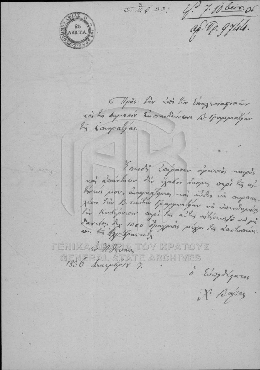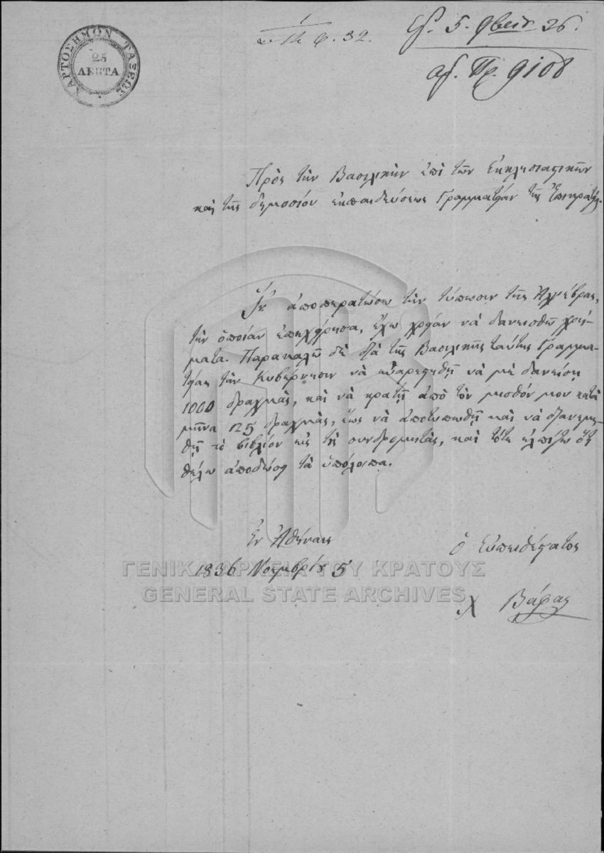 [File] GRGSA-CSA_PAO013.S02.01.F002850 File #2850 - SECRETARIAT/MINISTRY OF ECCLESIASTICAL ISSUES AND STATE EDUCATION ARCHIVE (1833-1848) [1836 - 1838] Vafas. |