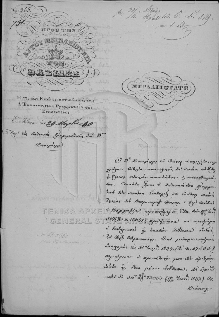 SECRETARIAT/MINISTRY OF ECCLESIASTICAL ISSUES AND STATE EDUCATION ARCHIVE (1833-1848) - SECRETARIAT/MINISTRY OF ECCLESIASTICAL ISSUES AND STATE EDUCATION ARCHIVE (1833-1848)  [1833 - 1848]