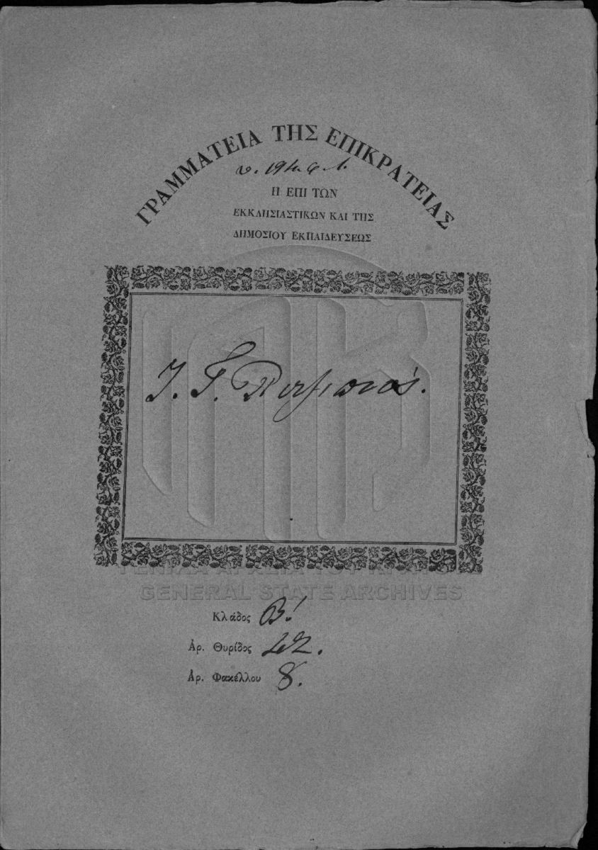 Το αρχείο της Γραμματείας επί των Εκκλησιαστικών και της Δημοσίου Εκπαιδεύσεως διαρθρώνεται σε τρεις σειρές ως εξής: Ι. Σειρά των Εκκλη...