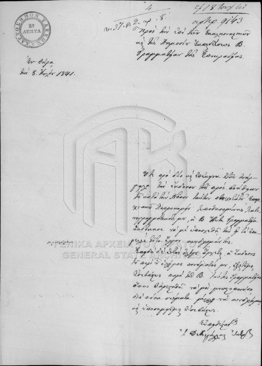 [File] GRGSA-CSA_PAO013.S02.01.F002896 File #2896 - SECRETARIAT/MINISTRY OF ECCLESIASTICAL ISSUES AND STATE EDUCATION ARCHIVE (1833-1848) [1840 - 1841] D. Kigalas. |