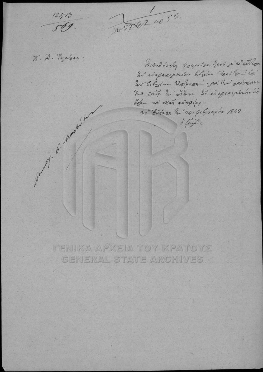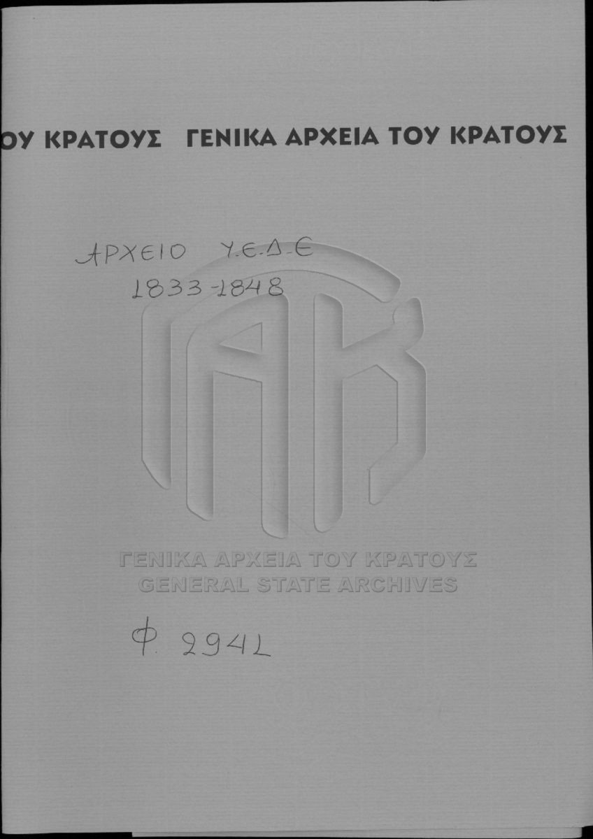 [File] GRGSA-CSA_PAO013.S02.01.F002941 File #2941 - SECRETARIAT/MINISTRY OF ECCLESIASTICAL ISSUES AND STATE EDUCATION ARCHIVE (1833-1848) [1842] Κ.D. Tympas. |