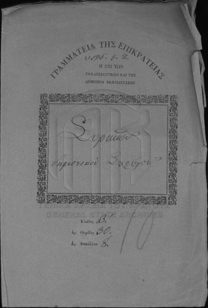 [File] GRGSA-CSA_PAO013.S02.01.F002954 File #2954 - SECRETARIAT/MINISTRY OF ECCLESIASTICAL ISSUES AND STATE EDUCATION ARCHIVE (1833-1848) [1838] Syreon Elementary School. |