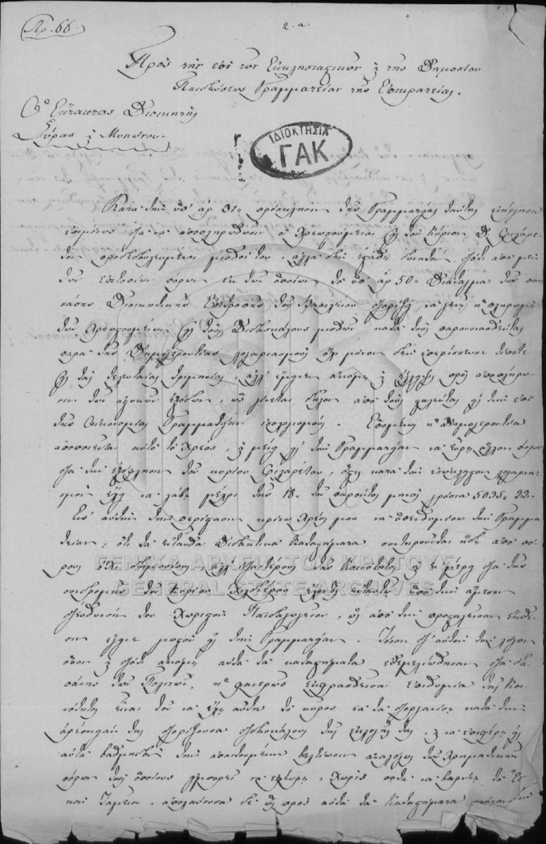[Fonds] GRGSA-CSA_PAO013 SECRETARIAT/MINISTRY OF ECCLESIASTICAL ISSUES AND STATE EDUCATION ARCHIVE (1833-1848) - SECRETARIAT/MINISTRY OF ECCLESIASTICAL ISSUES AND STATE EDUCATION ARCHIVE (1833-1848) [1833 - 1848] Το αρχείο της Γραμματείας επί των Εκκλησιαστικών και της Δημοσίου Εκπαιδεύσεως διαρθρώνεται σε τρεις σειρές ως εξής: Ι. Σειρά των Εκκλη... |