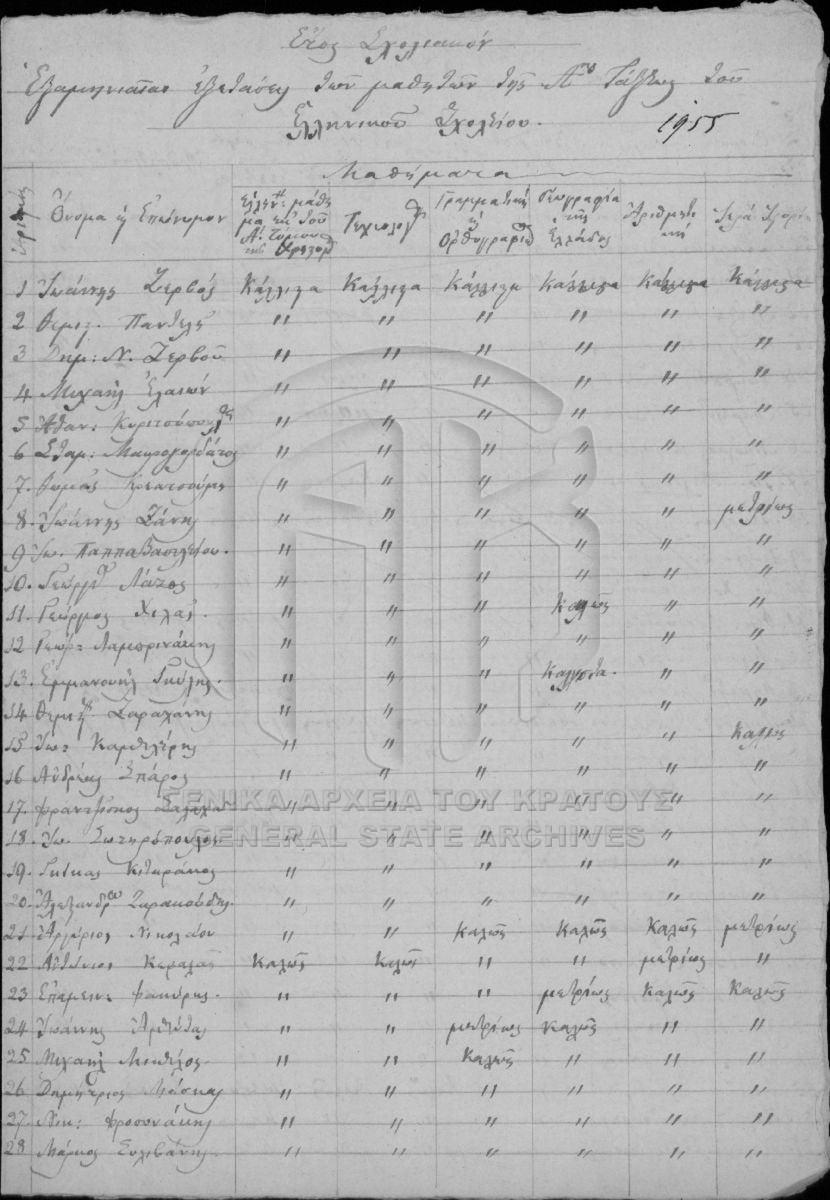 Προσωπικόν. Μισθοί του προσωπικού. Υπότροφοι. Μισθοί αυτών. Εξετάσεις. Βιβλιοθήκη.