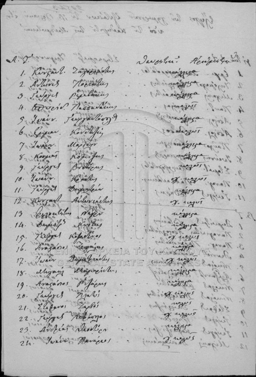 Gymnasium of Syros. A. Staff, B. Staff payroll, C. Bursars, D. Their payroll, E. Exams and List of Students, F. Library and instruments.