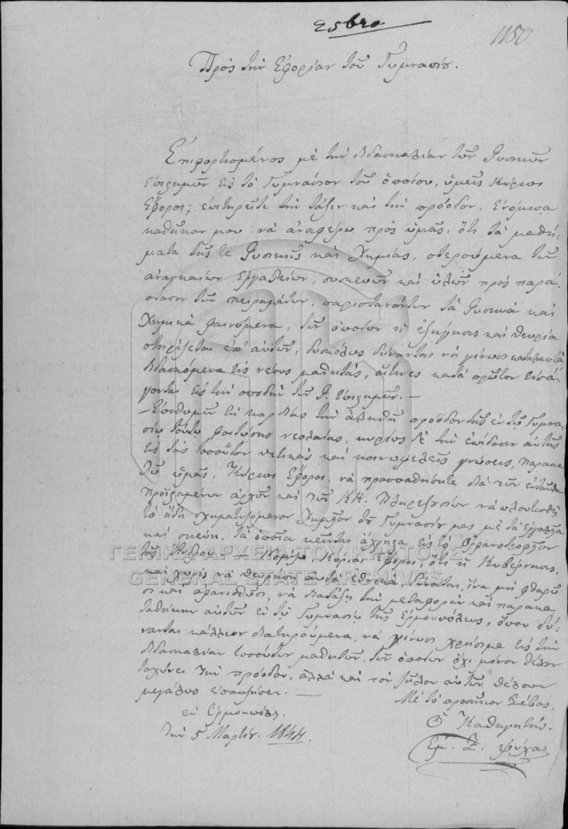 Gymnasium of Syros. A. Staff, B. Staff payroll, C. Bursars, D. Their payroll, E. Exams and List of Students, F. Library and instruments.
