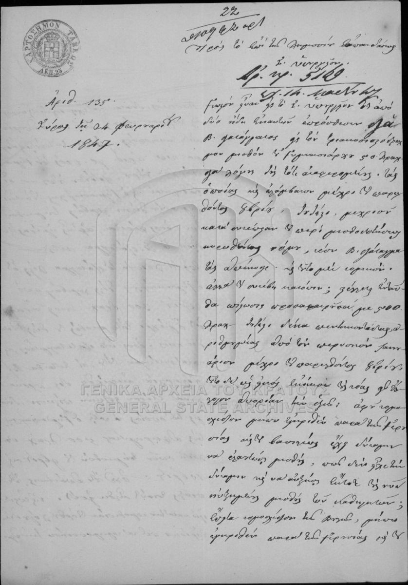 [Fonds] GRGSA-CSA_PAO013 SECRETARIAT/MINISTRY OF ECCLESIASTICAL ISSUES AND STATE EDUCATION ARCHIVE (1833-1848) - SECRETARIAT/MINISTRY OF ECCLESIASTICAL ISSUES AND STATE EDUCATION ARCHIVE (1833-1848) [1833 - 1848] Το αρχείο της Γραμματείας επί των Εκκλησιαστικών και της Δημοσίου Εκπαιδεύσεως διαρθρώνεται σε τρεις σειρές ως εξής: Ι. Σειρά των Εκκλη... |