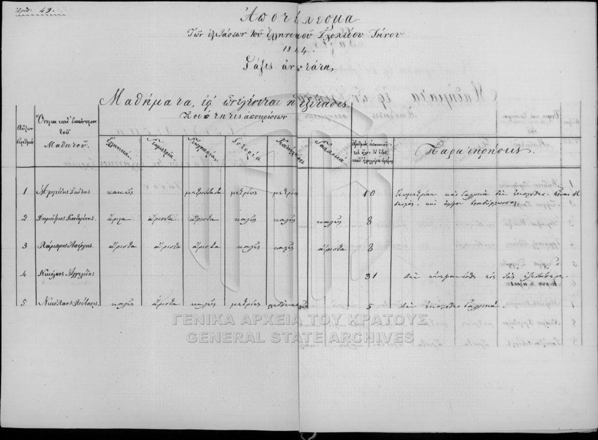Greek School of Tinos. Staff payroll. Library and Exams. Staff. List of students.