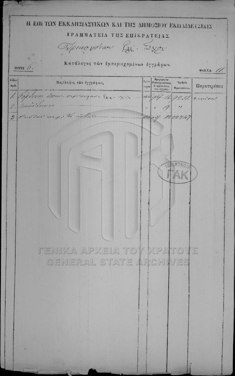 [File] GRGSA-CSA_PAO013.S02.01.F003009 File #3009 - SECRETARIAT/MINISTRY OF ECCLESIASTICAL ISSUES AND STATE EDUCATION ARCHIVE (1833-1848) [1836] Greek School of Trikolona. |
