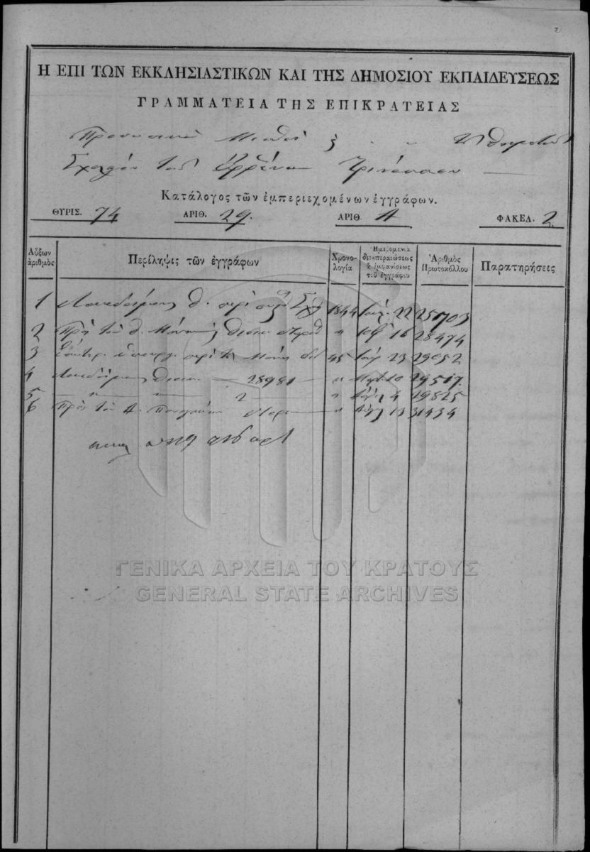 Το αρχείο της Γραμματείας επί των Εκκλησιαστικών και της Δημοσίου Εκπαιδεύσεως διαρθρώνεται σε τρεις σειρές ως εξής: Ι. Σειρά των Εκκλη...