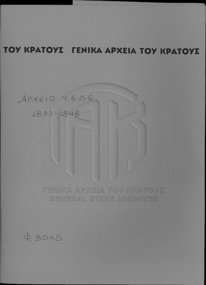 [Fonds] GRGSA-CSA_PAO013 SECRETARIAT/MINISTRY OF ECCLESIASTICAL ISSUES AND STATE EDUCATION ARCHIVE (1833-1848) - SECRETARIAT/MINISTRY OF ECCLESIASTICAL ISSUES AND STATE EDUCATION ARCHIVE (1833-1848) [1833 - 1848] Το αρχείο της Γραμματείας επί των Εκκλησιαστικών και της Δημοσίου Εκπαιδεύσεως διαρθρώνεται σε τρεις σειρές ως εξής: Ι. Σειρά των Εκκλη... |