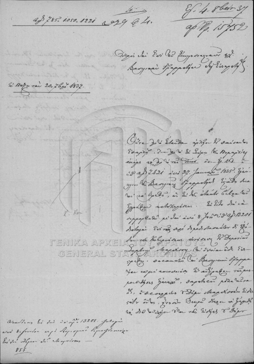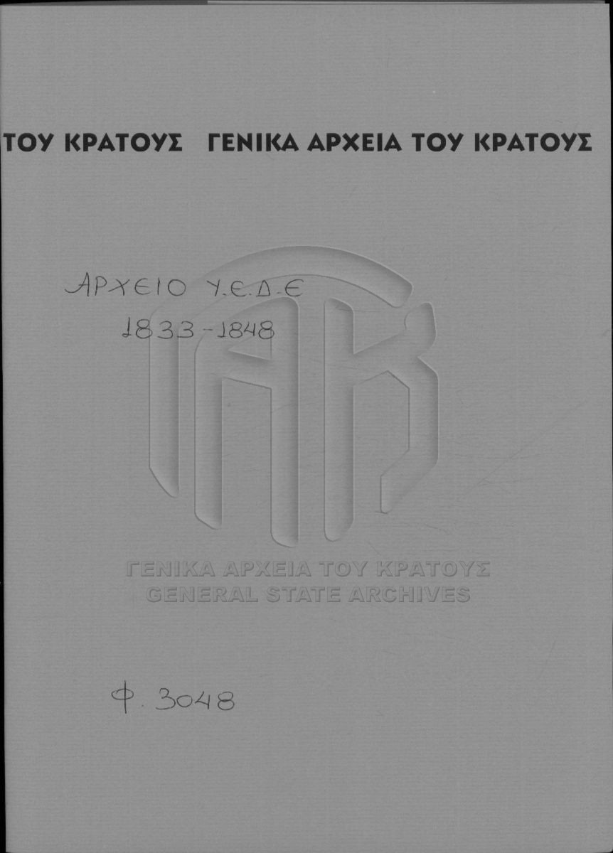 [Fonds] GRGSA-CSA_PAO013 SECRETARIAT/MINISTRY OF ECCLESIASTICAL ISSUES AND STATE EDUCATION ARCHIVE (1833-1848) - SECRETARIAT/MINISTRY OF ECCLESIASTICAL ISSUES AND STATE EDUCATION ARCHIVE (1833-1848) [1833 - 1848] Το αρχείο της Γραμματείας επί των Εκκλησιαστικών και της Δημοσίου Εκπαιδεύσεως διαρθρώνεται σε τρεις σειρές ως εξής: Ι. Σειρά των Εκκλη... |
