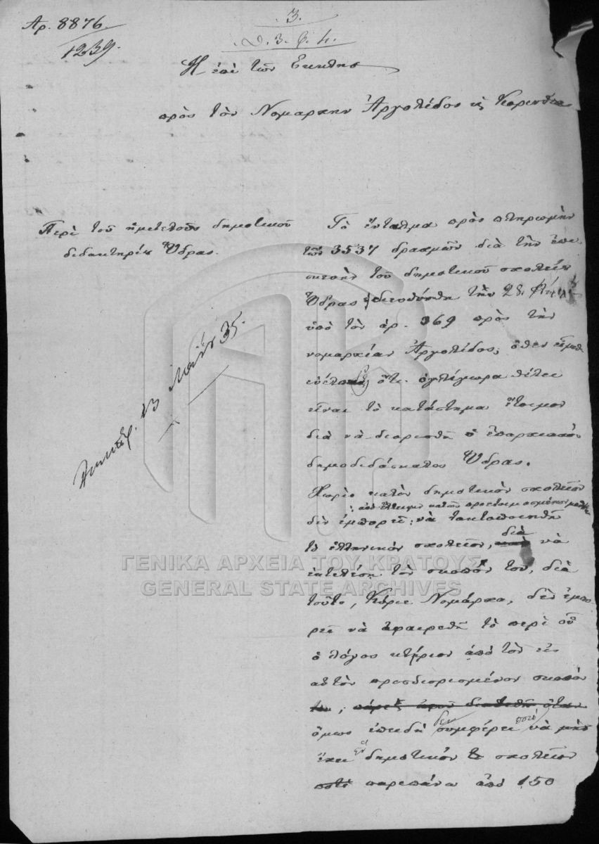 [File] GRGSA-CSA_PAO013.S02.01.F003078 File #3078 - SECRETARIAT/MINISTRY OF ECCLESIASTICAL ISSUES AND STATE EDUCATION ARCHIVE (1833-1848) [1835 - 1839] Greek School of Hydra. |
