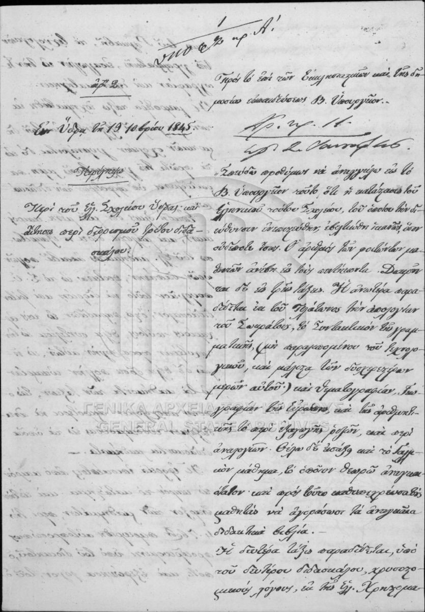 [Fonds] GRGSA-CSA_PAO013 ARCHIVES DE LA CHANCELLERIE/DU MINISTERE DES CULTES ET DE L'EDUCATION PUBLIQUE (1833-1848) - ARCHIVES DE LA CHANCELLERIE/DU MINISTERE DES CULTES ET DE L'EDUCATION PUBLIQUE (1833-1848) [1833 - 1848] Το αρχείο της Γραμματείας επί των Εκκλησιαστικών και της Δημοσίου Εκπαιδεύσεως διαρθρώνεται σε τρεις σειρές ως εξής: Ι. Σειρά των Εκκλη... |