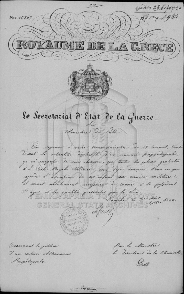 Αρχείο Γραμματείας / Υπουργείου Εκκλησιαστικών και Δημοσίου Εκπαιδεύσεως  [1833 - 1848]
