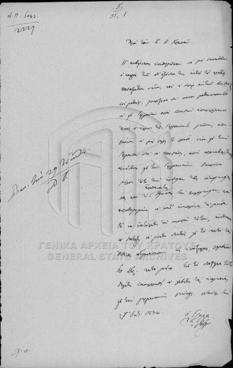[Fonds] GRGSA-CSA_PAO013 SECRETARIAT/MINISTRY OF ECCLESIASTICAL ISSUES AND STATE EDUCATION ARCHIVE (1833-1848) - SECRETARIAT/MINISTRY OF ECCLESIASTICAL ISSUES AND STATE EDUCATION ARCHIVE (1833-1848) [1833 - 1848] Το αρχείο της Γραμματείας επί των Εκκλησιαστικών και της Δημοσίου Εκπαιδεύσεως διαρθρώνεται σε τρεις σειρές ως εξής: Ι. Σειρά των Εκκλη... |