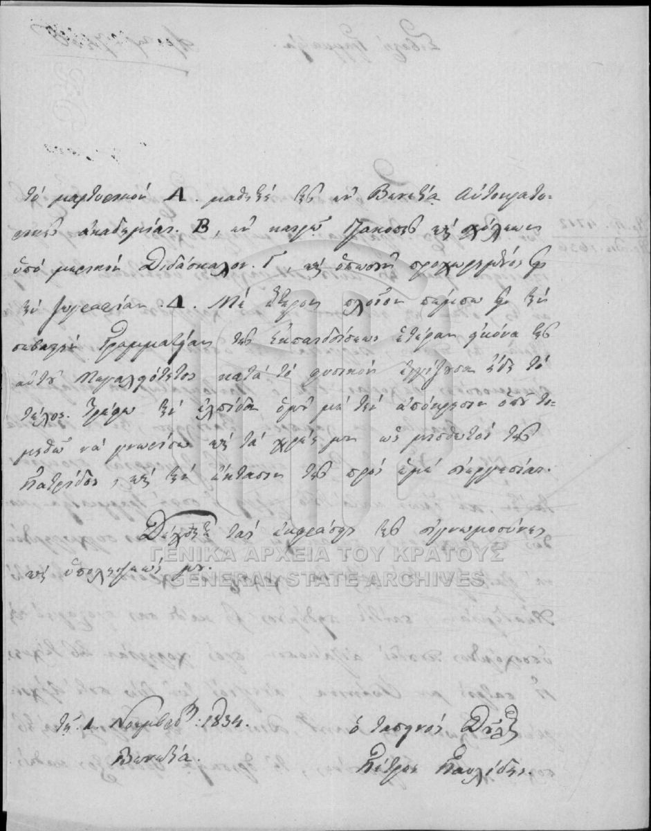 [Fichier] GRGSA-CSA_PAO013.S02.01.F003112 Fichier #3112 - ARCHIVES DE LA CHANCELLERIE/DU MINISTERE DES CULTES ET DE L'EDUCATION PUBLIQUE (1833-1848) [1834 - 1835] Petros Pavlidis (peintre). |