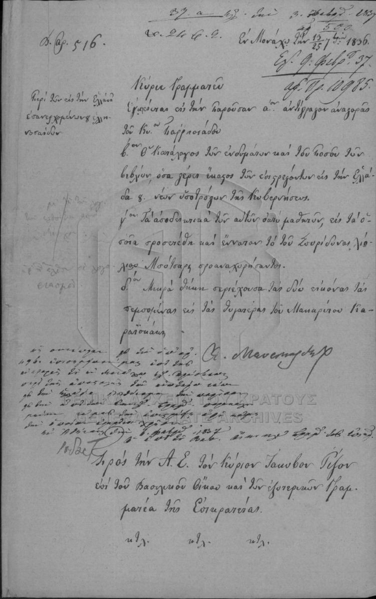 Αρχείο Γραμματείας / Υπουργείου Εκκλησιαστικών και Δημοσίου Εκπαιδεύσεως  [1833 - 1848]