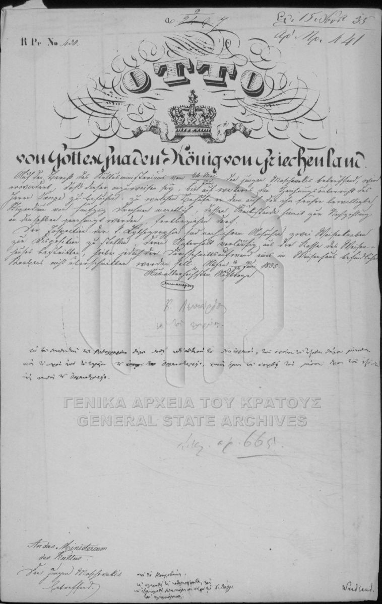 [Fonds] GRGSA-CSA_PAO013 SECRETARIAT/MINISTRY OF ECCLESIASTICAL ISSUES AND STATE EDUCATION ARCHIVE (1833-1848) - SECRETARIAT/MINISTRY OF ECCLESIASTICAL ISSUES AND STATE EDUCATION ARCHIVE (1833-1848) [1833 - 1848] Το αρχείο της Γραμματείας επί των Εκκλησιαστικών και της Δημοσίου Εκπαιδεύσεως διαρθρώνεται σε τρεις σειρές ως εξής: Ι. Σειρά των Εκκλη... |