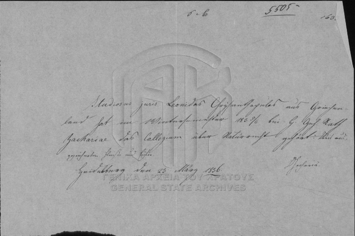 [File] GRGSA-CSA_PAO013.S02.01.F003130 File #3130 - SECRETARIAT/MINISTRY OF ECCLESIASTICAL ISSUES AND STATE EDUCATION ARCHIVE (1833-1848) [1835 - 1838] L. Chrysanthopoulos. |