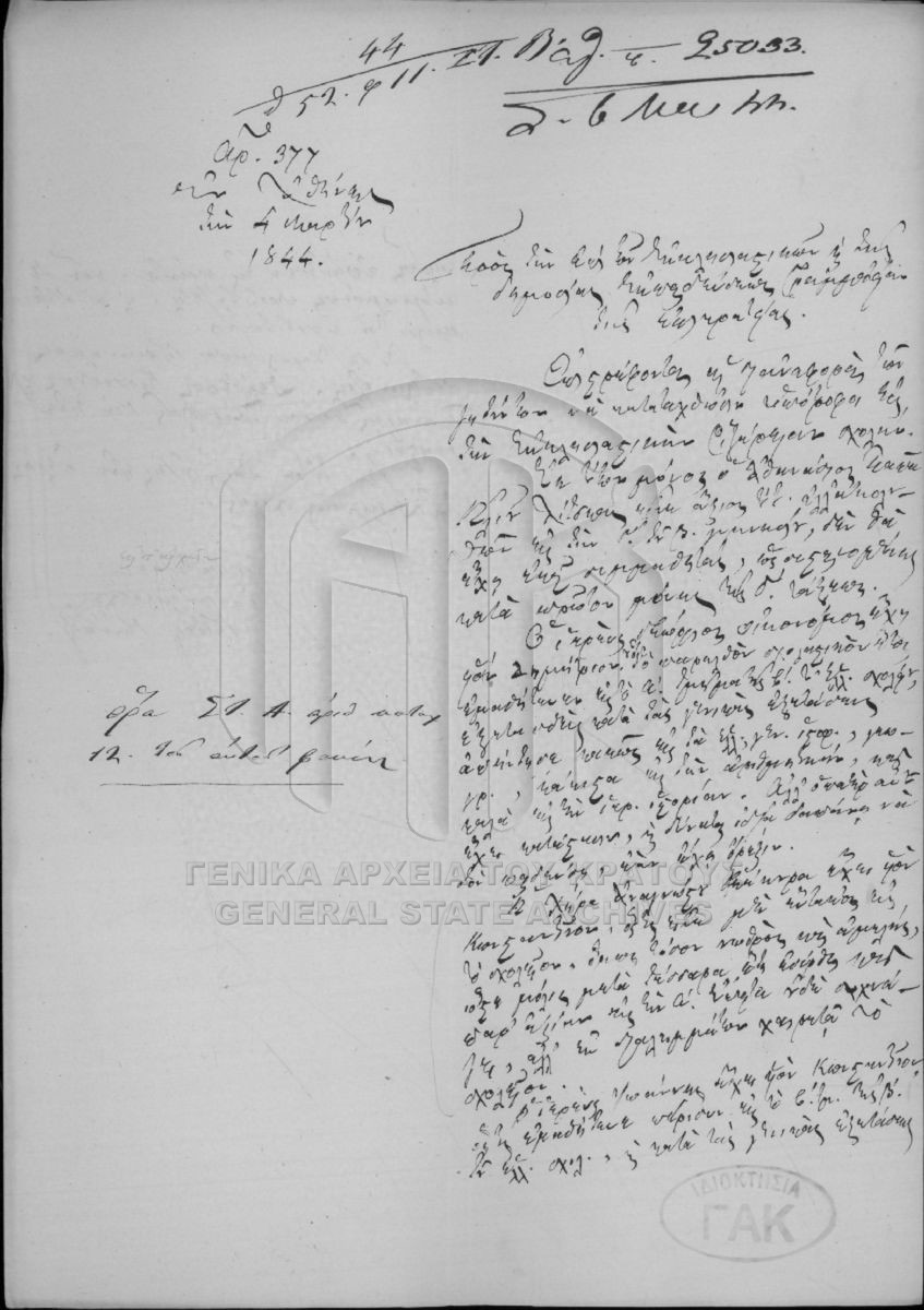 [Fonds] GRGSA-CSA_PAO013 SECRETARIAT/MINISTRY OF ECCLESIASTICAL ISSUES AND STATE EDUCATION ARCHIVE (1833-1848) - SECRETARIAT/MINISTRY OF ECCLESIASTICAL ISSUES AND STATE EDUCATION ARCHIVE (1833-1848) [1833 - 1848] Το αρχείο της Γραμματείας επί των Εκκλησιαστικών και της Δημοσίου Εκπαιδεύσεως διαρθρώνεται σε τρεις σειρές ως εξής: Ι. Σειρά των Εκκλη... |