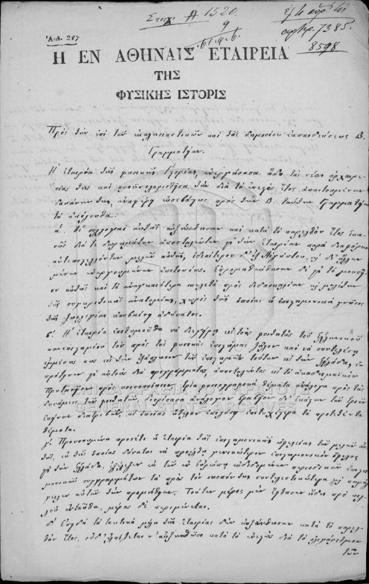 Φάκελος #3306 - Φυσικοϊστορική Εταιρεία  [1839 - 1845]