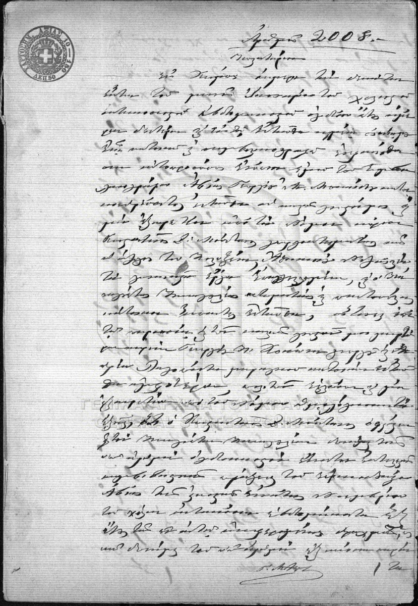 [Pièce] GRGSA-MES_NOT128.01.F000036.IT002008 Pièce #2008 - ΣΥΜΒΟΛΑΙΟΓΡΑΦΙΚΟ ΑΡΧΕΙΟ ΑΒΙΑΣ [16 Ιανουαρίου 1878] Συμβολαιογραφική πράξη. Πωλητήριον. |