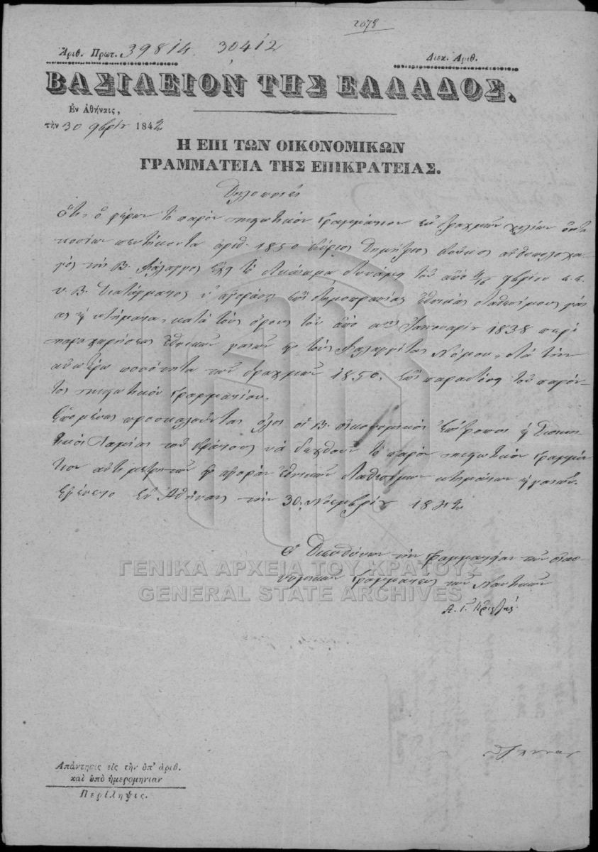 SECRETARIAT/MINISTRY OF FINANCE ARCHIVE: NATIONAL LANDS (1833-1869) - SECRETARIAT/MINISTRY OF FINANCE ARCHIVE: NATIONAL LANDS (1833-1869)  [1833 - 1869]