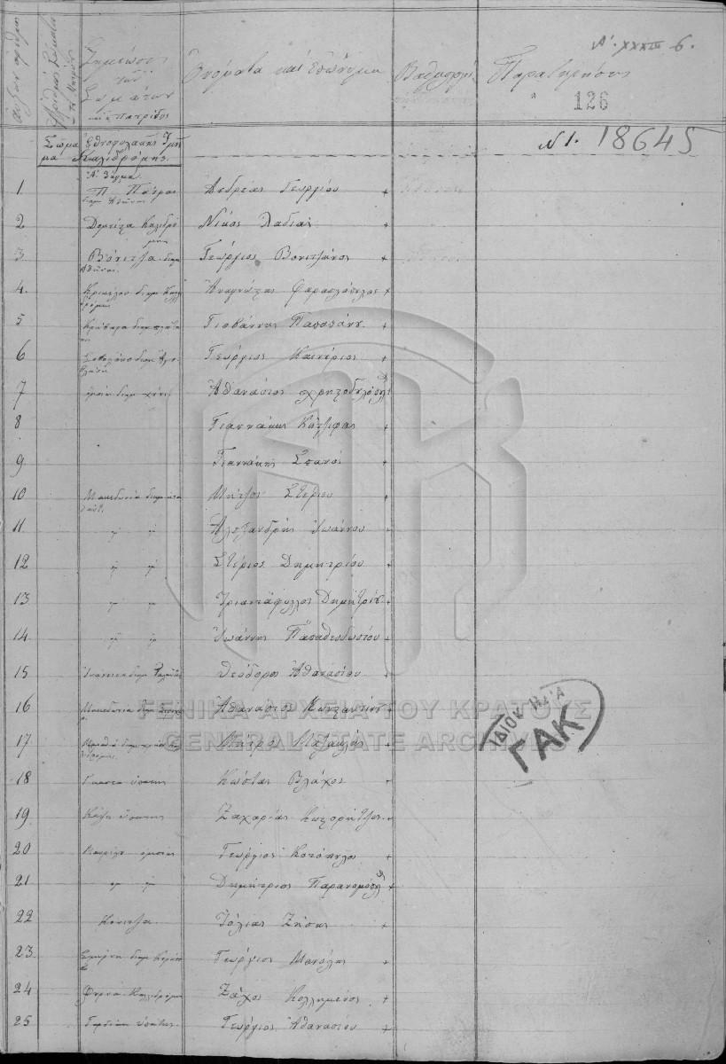 [Fonds] GRGSA-CSA_PAO007.00 Αριστεία [1834 - 1865] Το αρχείο αποτελείται από 307 φακέλους ποικίλου όγκου, οι οποίοι φέρουν ταξινομική αρίθμηση κατά χρονολογική σειρά, από 1-307. Αθροιστικά... |