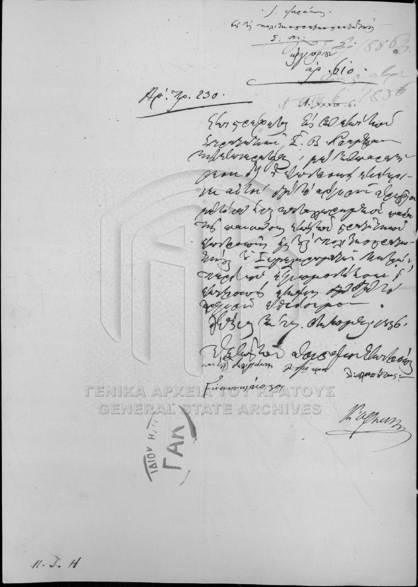 [Αρχείο] GRGSA-CSA_PAO007.00 Αριστεία [1834 - 1865] Το αρχείο αποτελείται από 307 φακέλους ποικίλου όγκου, οι οποίοι φέρουν ταξινομική αρίθμηση κατά χρονολογική σειρά, από 1-307. Αθροιστικά... |
