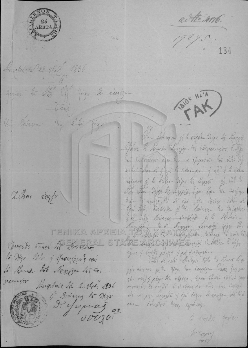 [Item] GRGSA-CSA_PAO007.00.01.F000007.IT000184 Item #184 - Διαμαρτυρίες/Ενστάσεις [28 Σεπτεμβρίου 1836] Επιστολή του λοχία Δ. Σαμίου προς τη Διοίκηση του λόχου των Απομάχων για να ενεργήσει τα δέοντα ώστε να τιμηθεί με αριστείο. |
