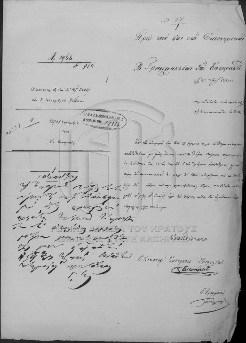 SECRETARIAT/MINISTRY OF FINANCE ARCHIVE: NATIONAL LANDS (1833-1869) - SECRETARIAT/MINISTRY OF FINANCE ARCHIVE: NATIONAL LANDS (1833-1869)  [1833 - 1869]