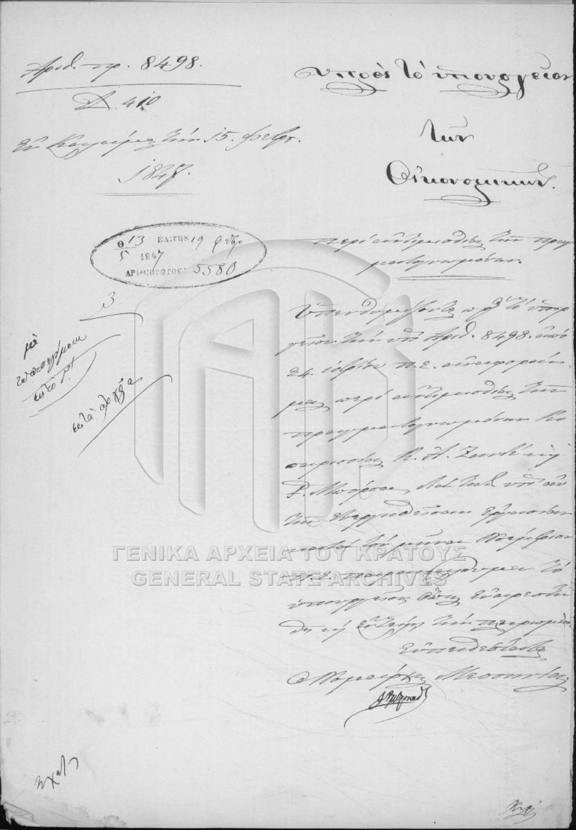 Φάκελος #852 - Επαρχίες Καλαμών και Μεσσήνης, 1847  [1847]